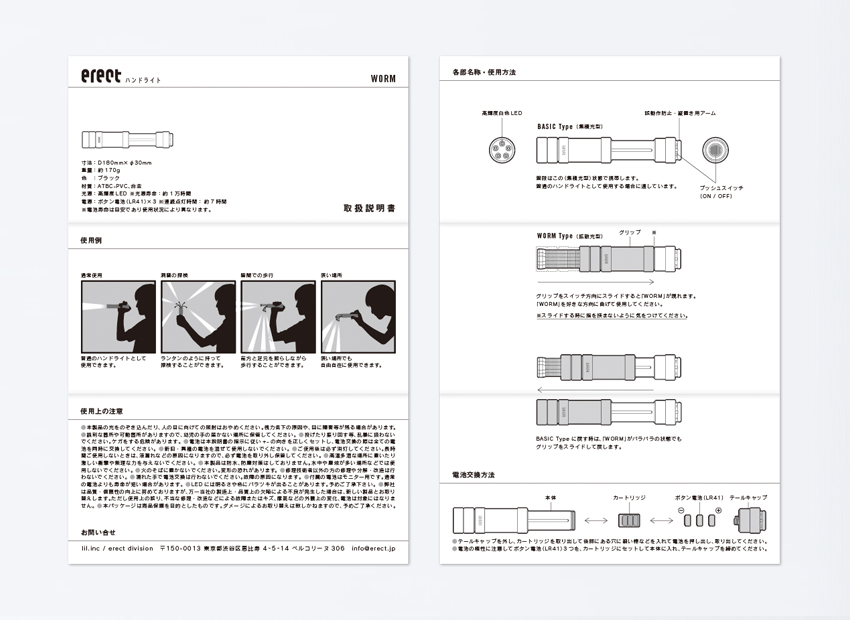 erectハンドライト「worm」パッケージ